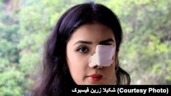 شکیلا زرین، زن جوان افغان، است که خشونت شوهرش آنهم با ضرب مرمی، چهره اش را سوء شکل داده است.