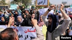 صدها زن و مرد در حالی که شعارهای "زنده باد مقاومت" و "مرگ بر پاکستان" را سر میدادند در جادههای کابل راهپیمایی کردند.