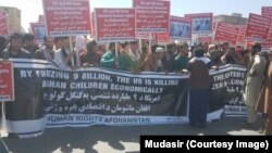 این معترضان که شمار شان به دهها نفر میرسید روز شنبه ۱۷ سپتمبر (۲۵ سنبله) با حمل شعارهای "امریکا باید پولهای افغانستان را آزاد کند" گفته اند که این پول مربوط مردم این کشور است.