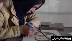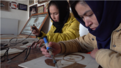 گروهی از دختران هنرمند در ولایت بامیان با گشایش یک کارگاه کوچک هنری علاوه بر ایجاد شغل در تلاش ترویج هنر سوختهنگاری، کندن کاری روی چوب و تولید وسایل تزیینی اند.